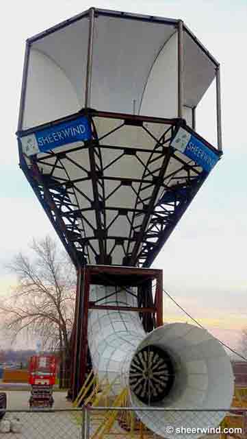 Nach Angaben des Herstellers ist eine Anlage mit einer Gesamthöhe von 28 m in der Lage, eine elektrische Leistung von 1,8 MW zu erzeugen. Zum Vergleich: Eine herkömmliche WKA müsste dazu eine Gesamthöhe von 132,5 m aufweisen. Zugleich fallen periodischer Schattenwurf ebenso wie die Ausbreitung von tieffrequentem Schall (Infraschall) – letzteres durch entsprechende Dämmungsmaßnahmen – weg. Auch Fledermäuse und Vögel werden nicht geschädigt, da am Einlauf keine Sogwirkung entsteht und dieser am Fuß mit einem Netz abgesichert werden kann.